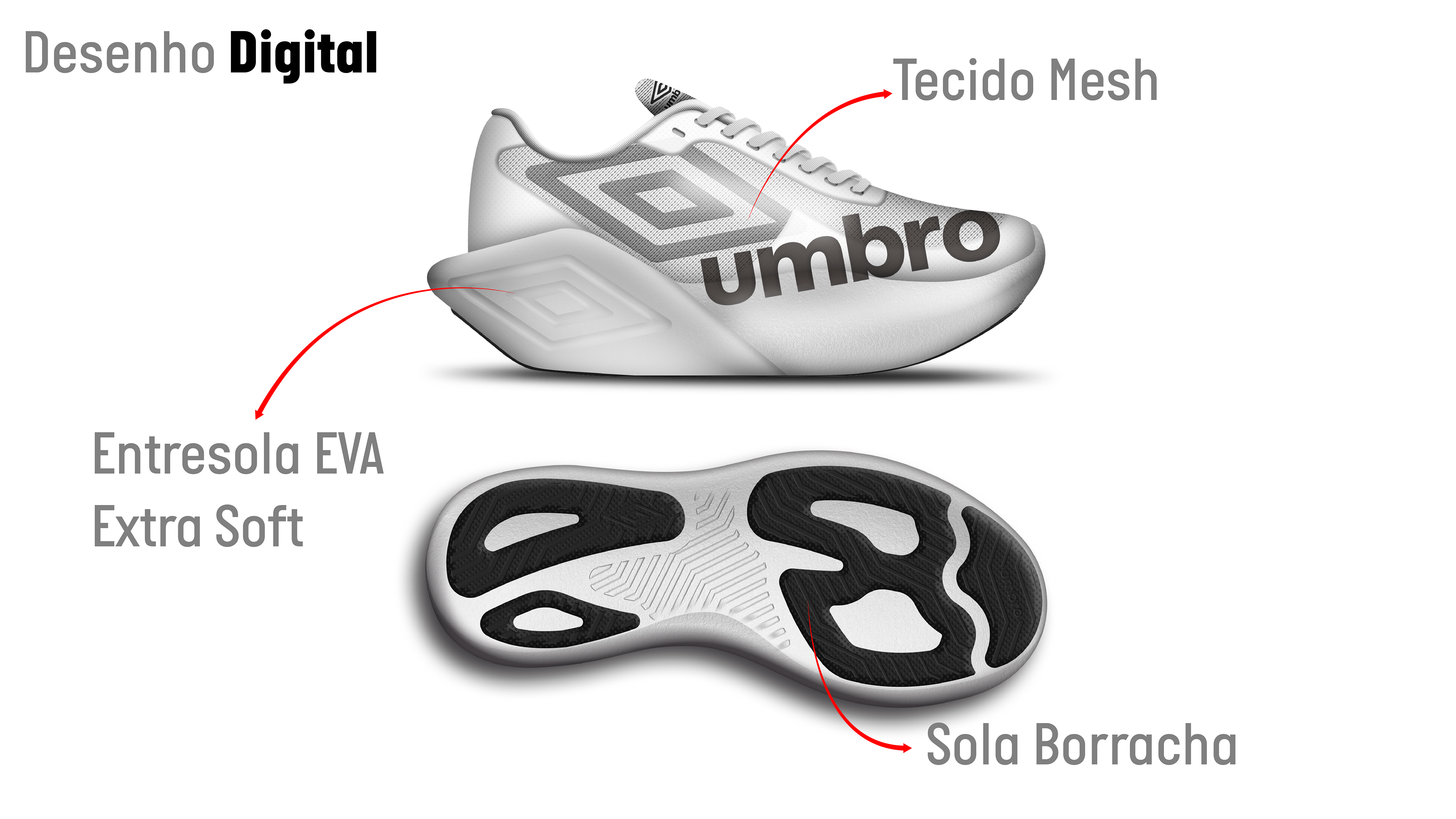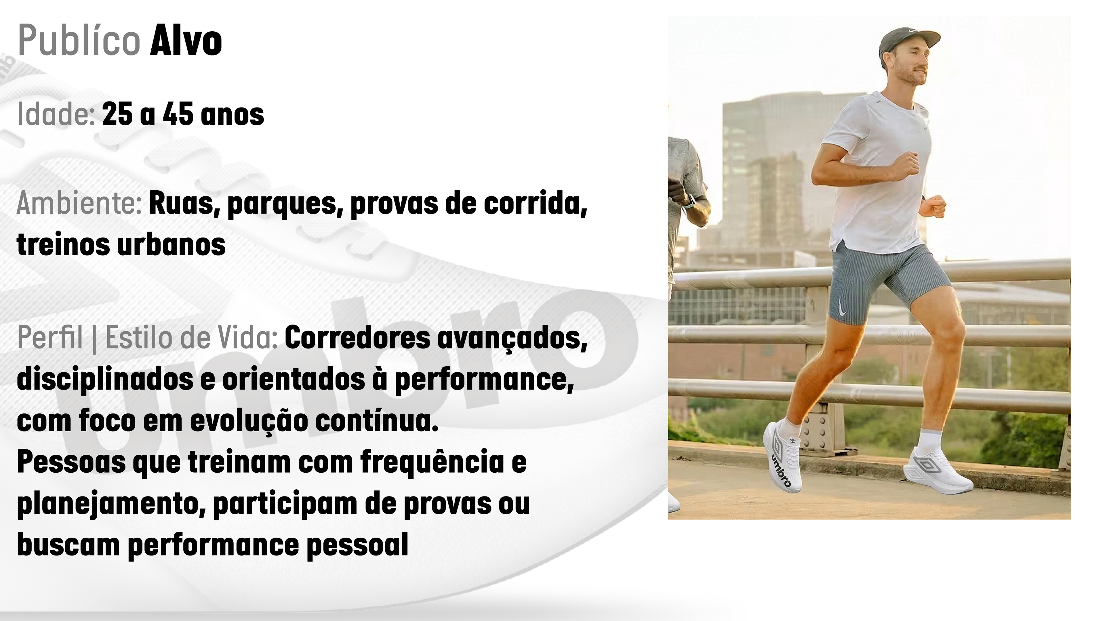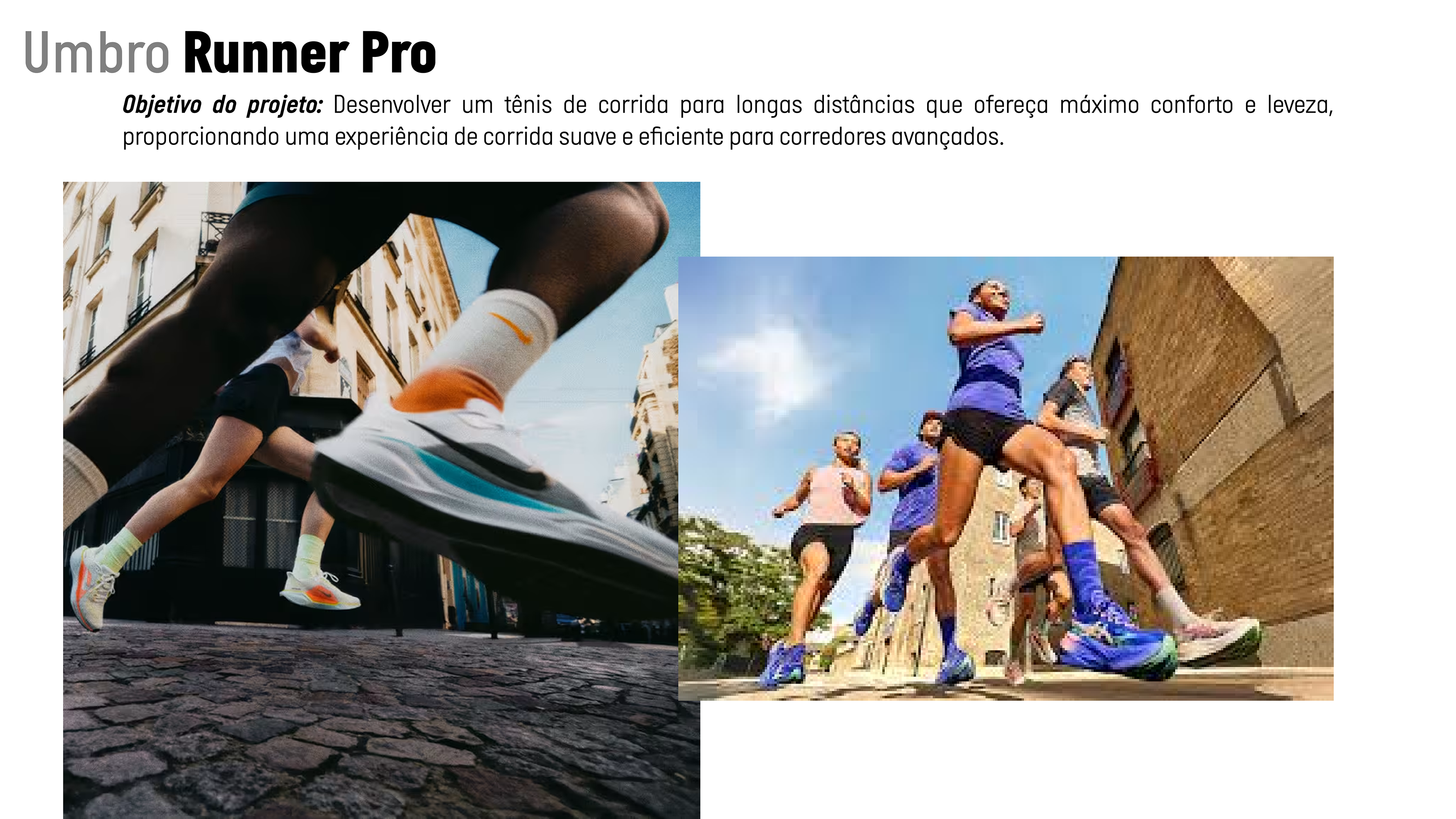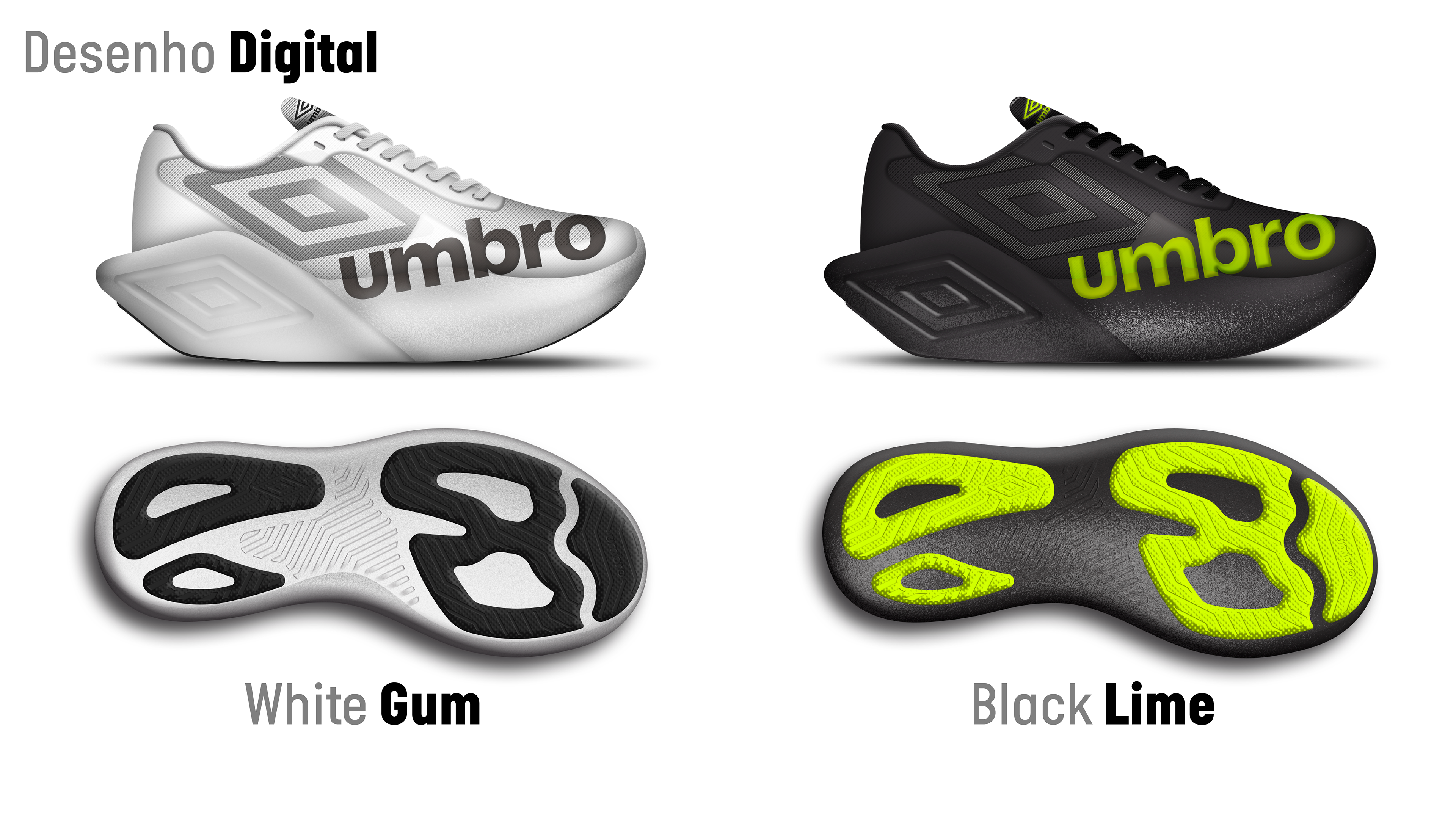 O Umbro Runner Pro é um projeto conceitual de tênis de corrida voltado para atletas avançados, com foco em provas e treinos de longa distância em ambientes urbanos. A proposta combina amortecimento e leveza, criando uma experiência de corrida mais fluida e confortável, ideal para corredores que exigem consistência ao longo de percursos extensos.